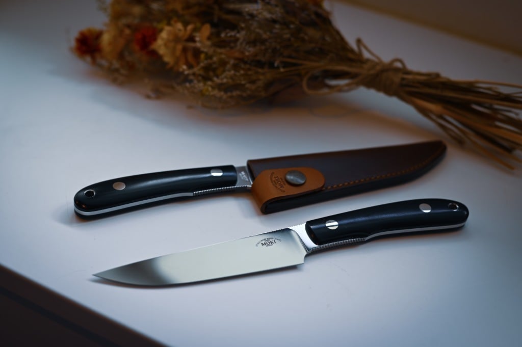 バンフシリーズの新作。バンフのハンドルのデザインはそのままにブレードのデザインを○○○目線での解釈。サイズ感的にはペティ―とステーキナイフの中間くらいのサイズになっています。ブレードには武生特殊鋼材の最高級VG-XEOSを採用。
