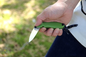 両手ではもちろんワンハンドでもブレードが起こせるサムスタッドがついているため片手でも操作がしやすいナイフです。
