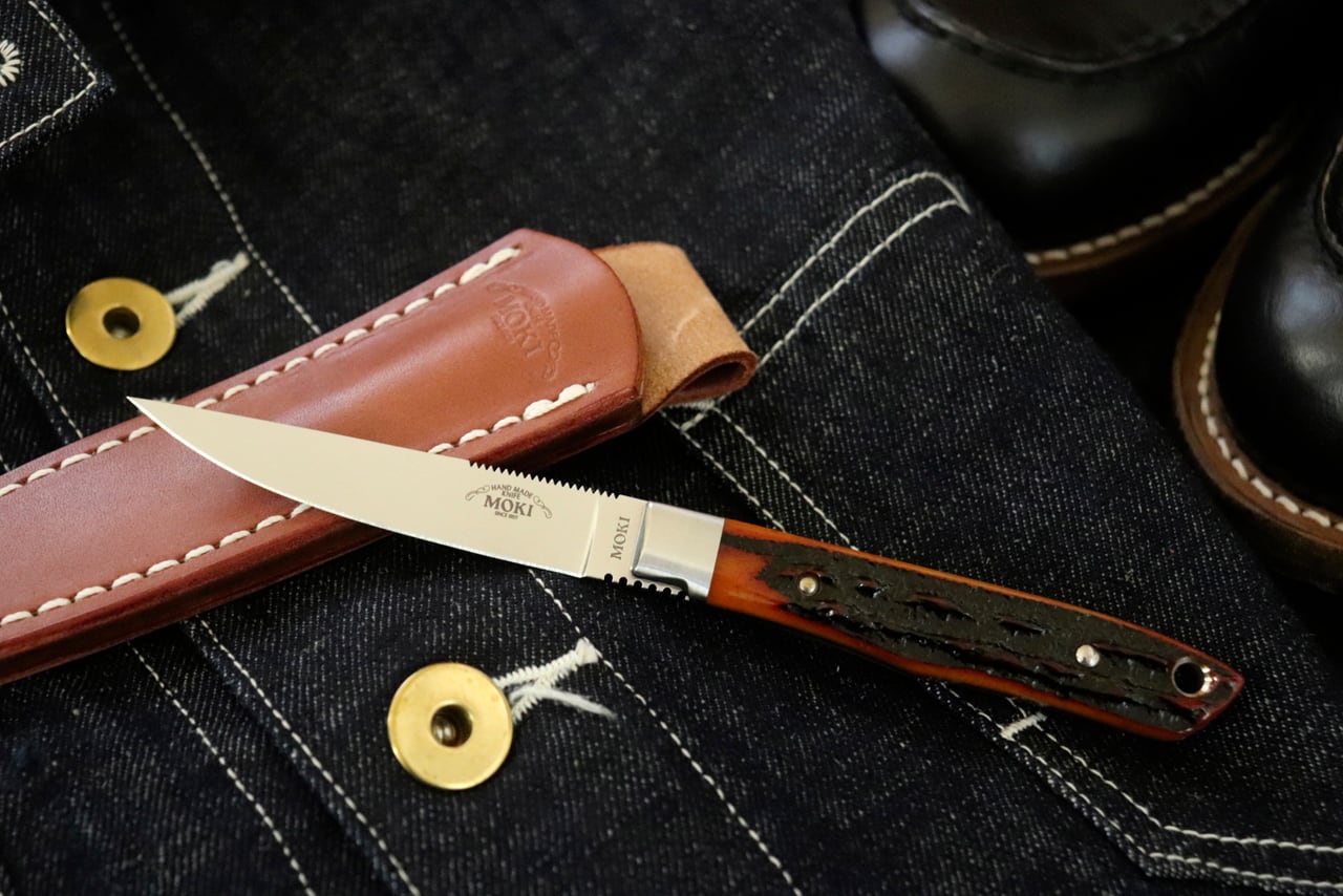 特にこちらのアンバーカラー鹿角パターンはモキナイフを代表するパターンで